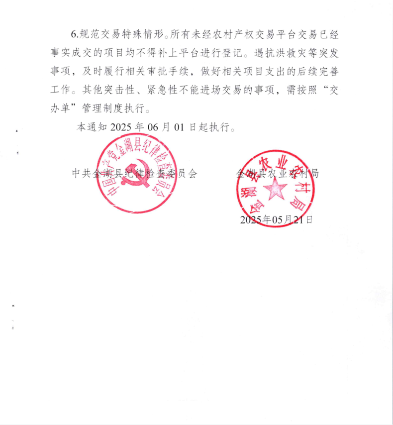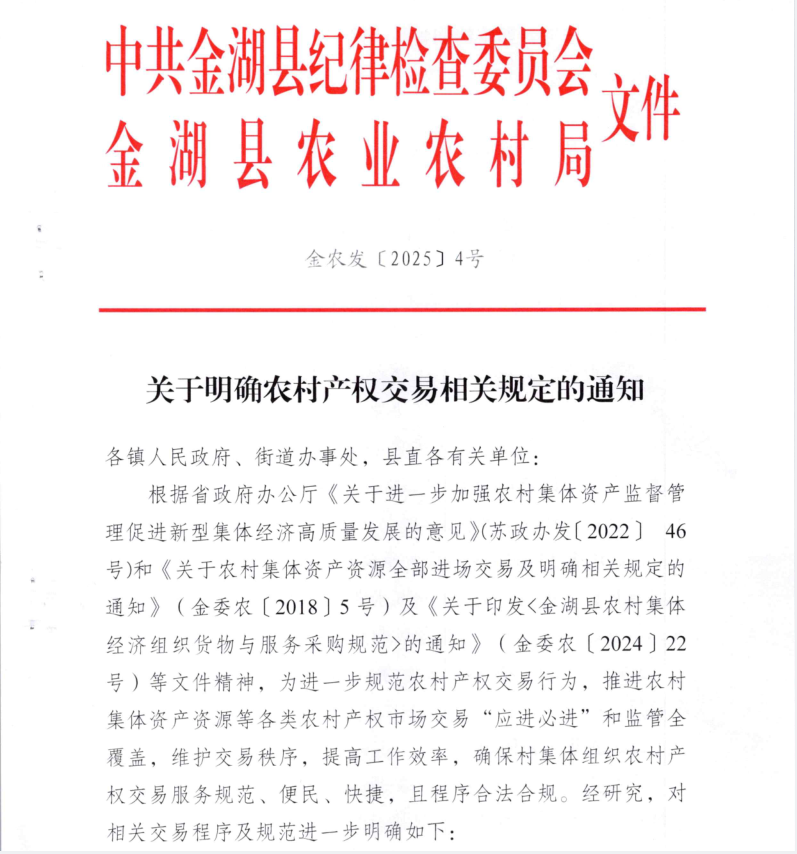《关于明确农村产权交易相关规定》(金农发【2025】4号)